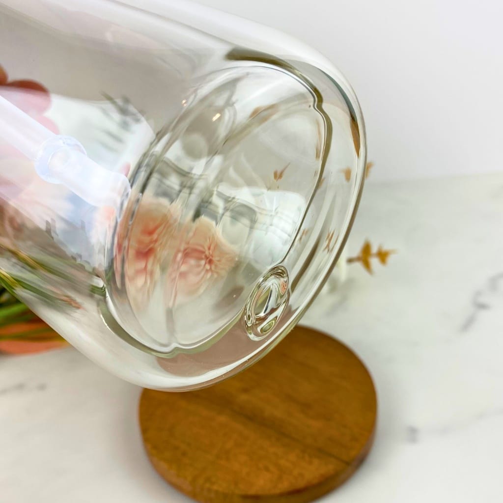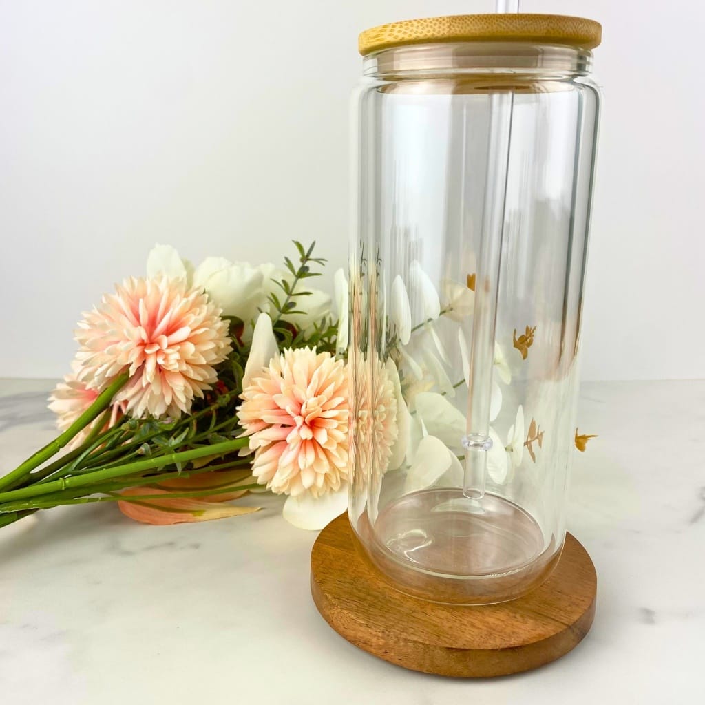 The glass will come with a bamboo lid and a clear plastic straw!