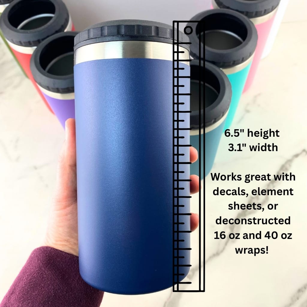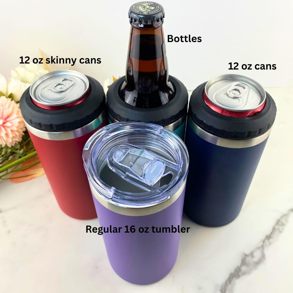 These can coolers work with glass bottles, 12 oz cans, skinny cans, or as a regular tumbler!