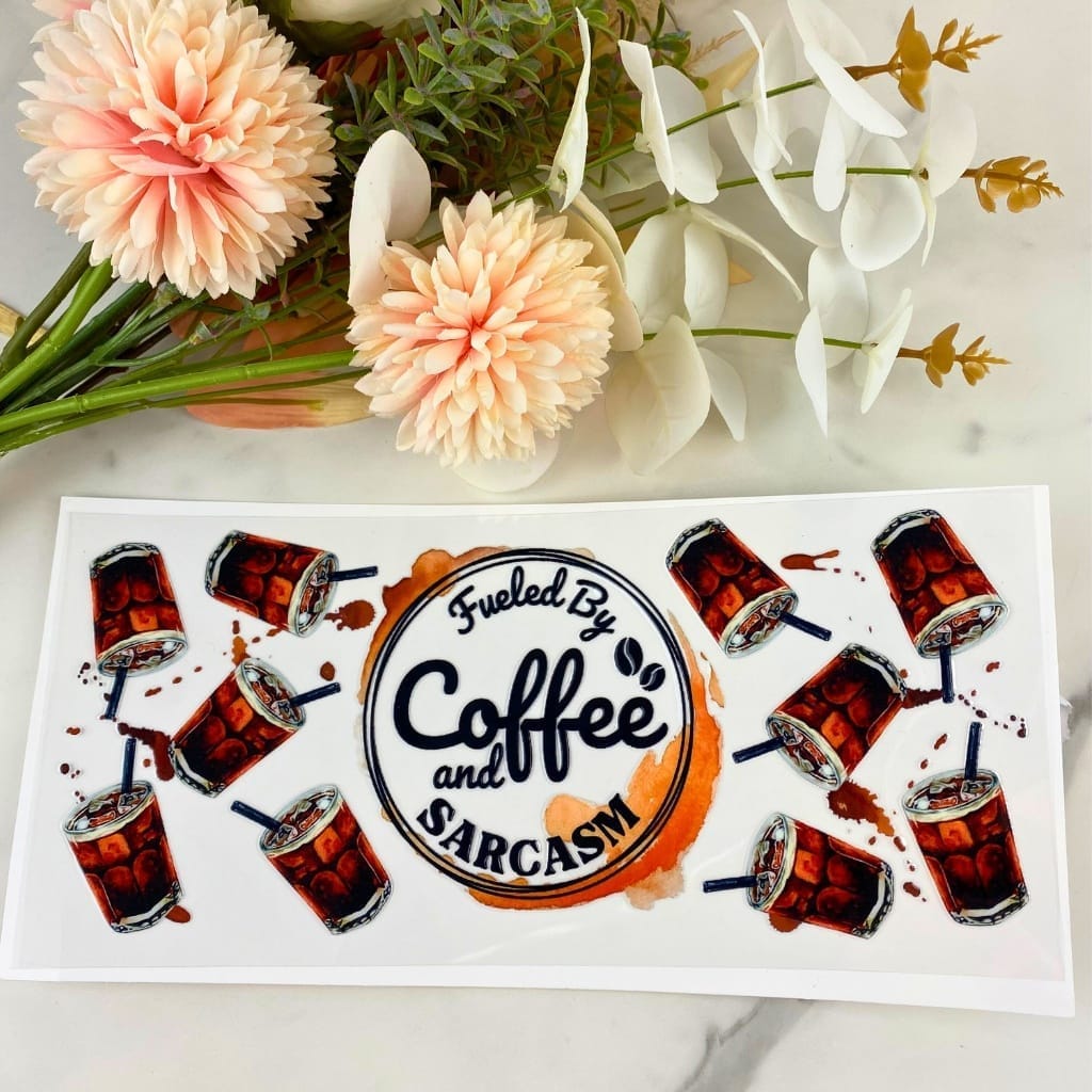 Fueled by Coffee and Sarcasm | 16 oz UV DTF Wrap