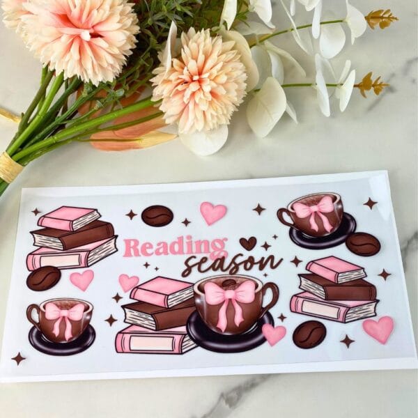 This Reading Season Wrap is sized for 16oz Libbey can glasses (9.4″ x 4.2″), but can be used on any hard surface, plastic, or tumblers. It’s just peel and stick!