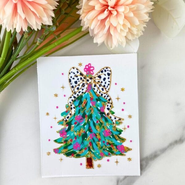 This Green Tree with Bow decal is 4″ tall and great for glasses, plastic, tumblers, or any other hard surface. It’s just peel and stick!