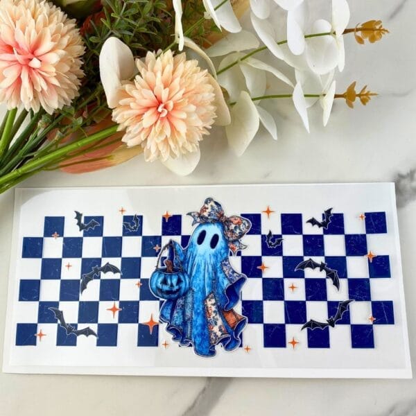 Checkered Blue Ghost | 16 oz UV DTF Wrap
