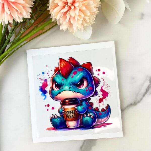 Coffee Please (Dinosaur) | 4″ UV DTF Decal