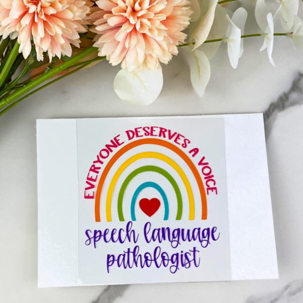 This SLP (Rainbow) Decal is 4″ in height and is great for glasses, plastic, tumblers, or any other hard surface! Just peel and stick!