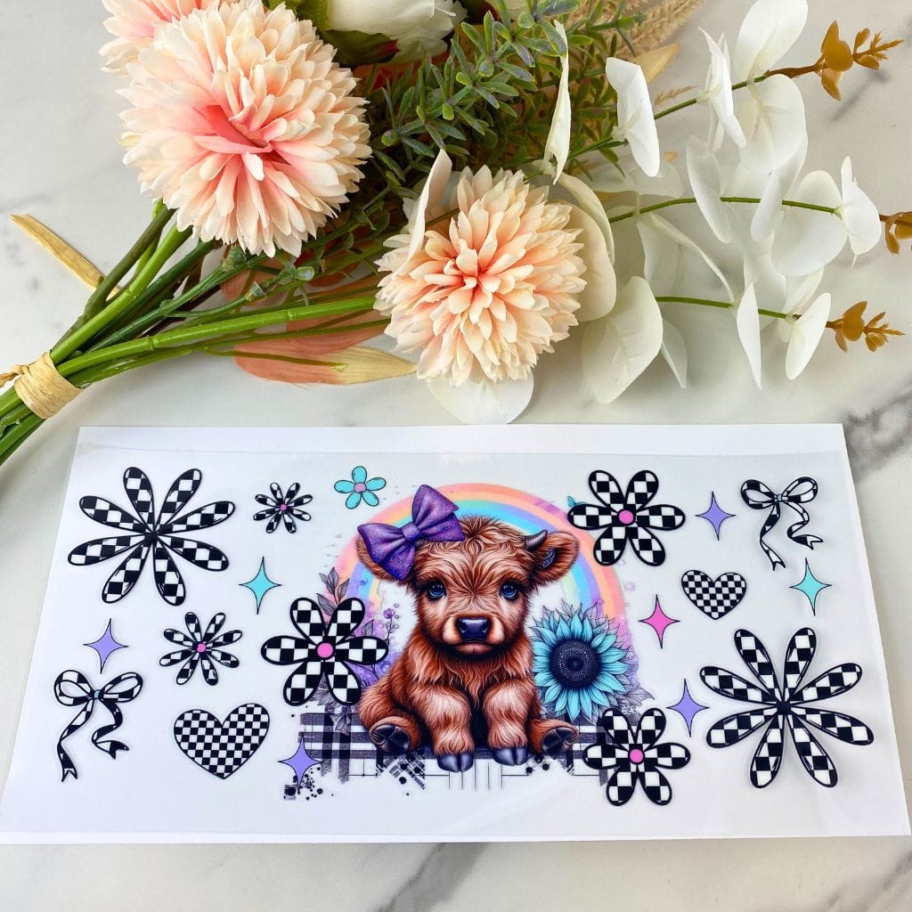 Checkered Flower Cow | 16 oz UV DTF Wrap