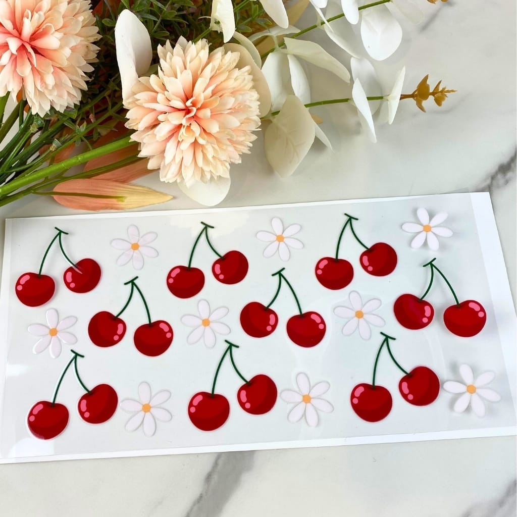 Cherry and Daisies | 16 oz UV DTF Wrap