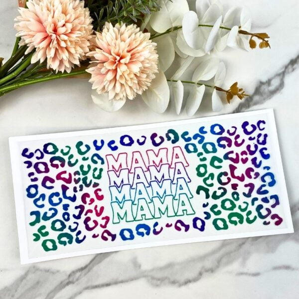 This Colorful Leopard Mama Wrap is sized for 16oz Libbey can glasses (9.4″ x 4.2″), but can be used on any hard surface, plastic, or tumblers. It’s just peel and stick!