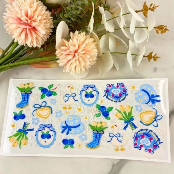 This Cottagecore Blueberry Wrap is sized for 16oz Libbey can glasses (9.4″ x 4.2″), but can be used on any hard surface, plastic, or tumblers. It’s just peel and stick!