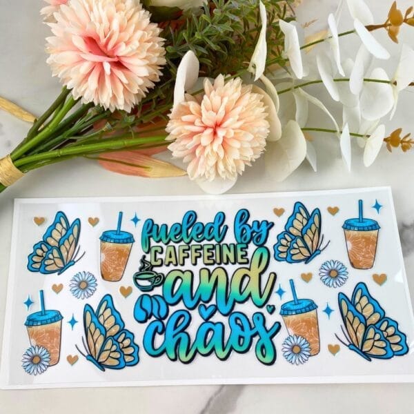 Fueled by Caffeine and Chaos | 16 oz UV DTF Wrap