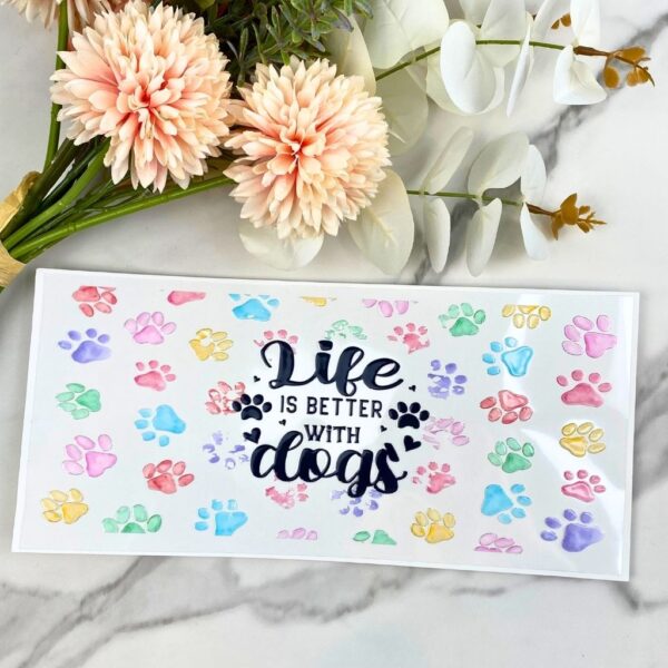 These wraps are sized for 16oz Libbey can glasses (9.4″ x 4.2″) but can be used on any hard surface. You can even cut it apart and place pieces individually on tumblers, coffee mugs, and more!
