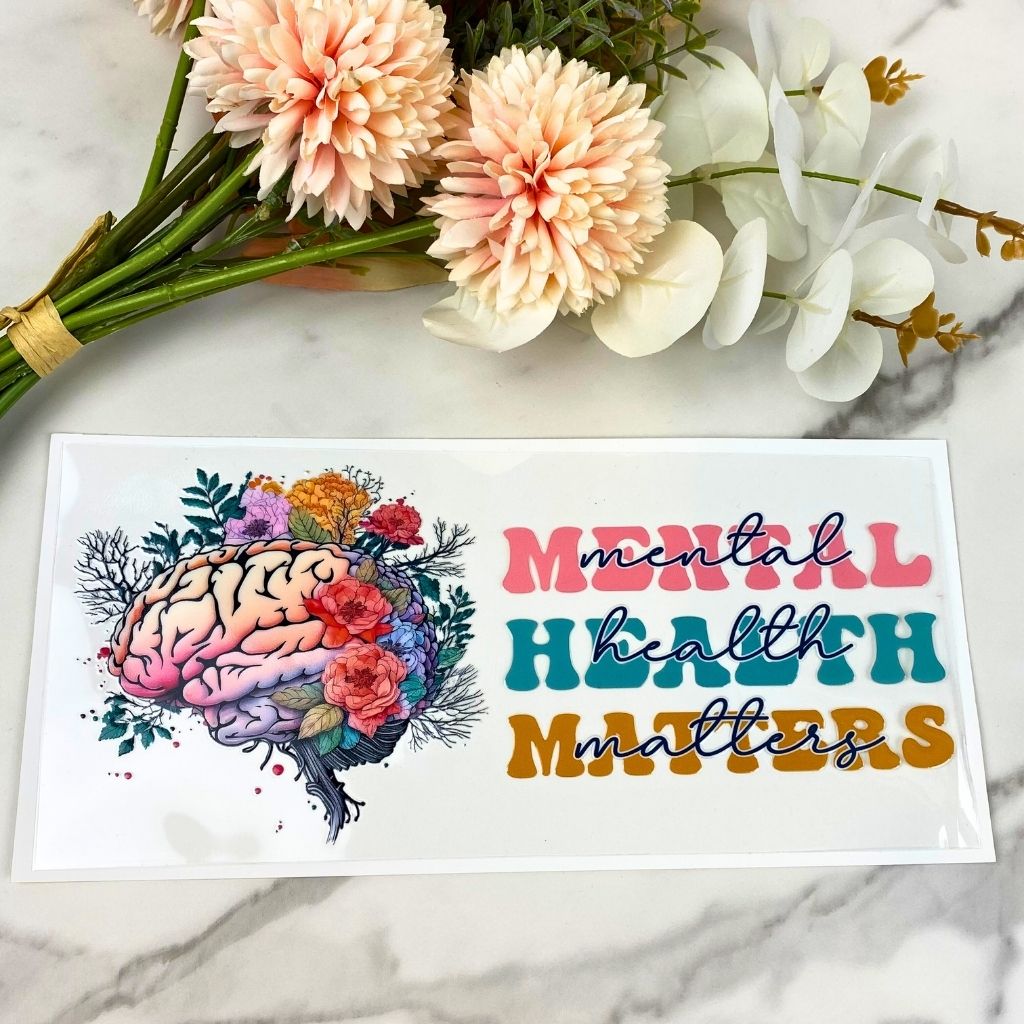This Mental Health Matters Wrap is sized for 16oz Libbey can glasses (9.4″ x 4.2″), but can be used on any hard surface, plastic, or tumblers. It’s just peel and stick!