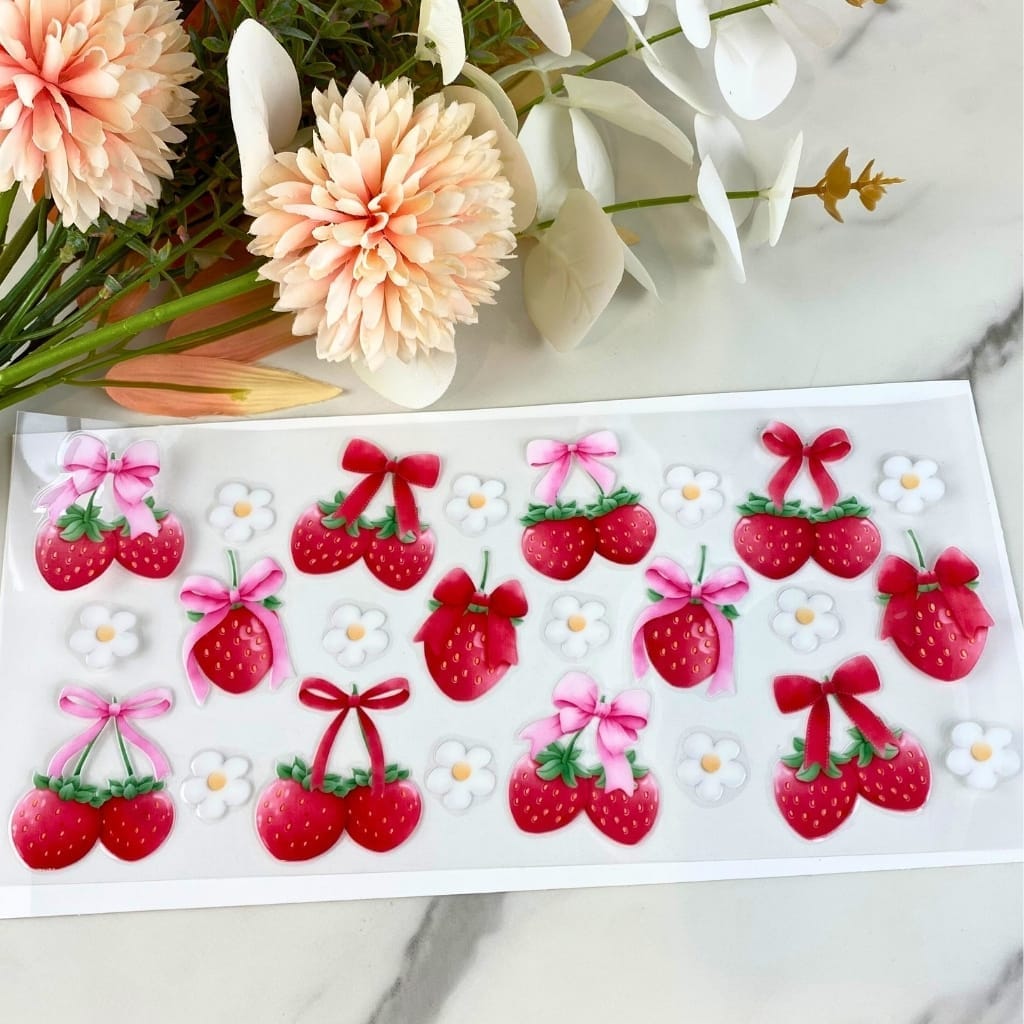 Strawberries and Bows | 16 oz UV DTF Wrap