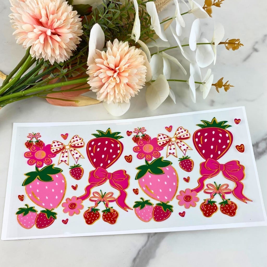 Strawberry Bow Floral | 16 oz UV DTF Wrap