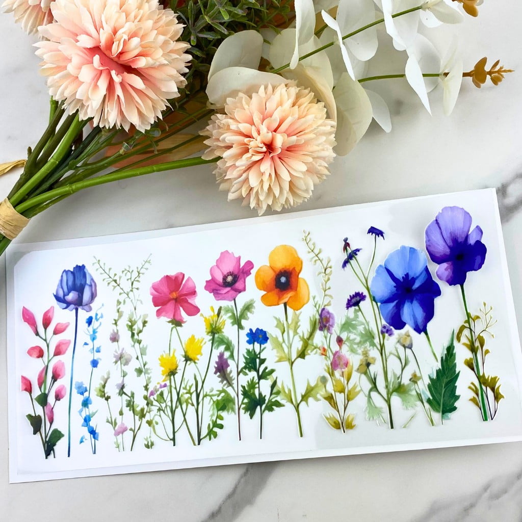 This Wildflowers Wrap is sized for 16oz Libbey can glasses (9.4″ x 4.2″), but can be used on any hard surface, plastic, or tumblers. It’s just peel and stick!