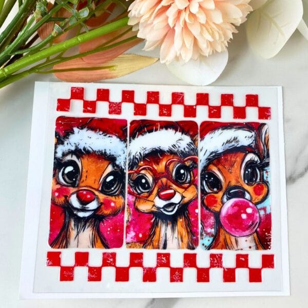 This Checkered Reindeer decal is 4″ tall and great for glasses, plastic, tumblers, or any other hard surface. It’s just peel and stick!