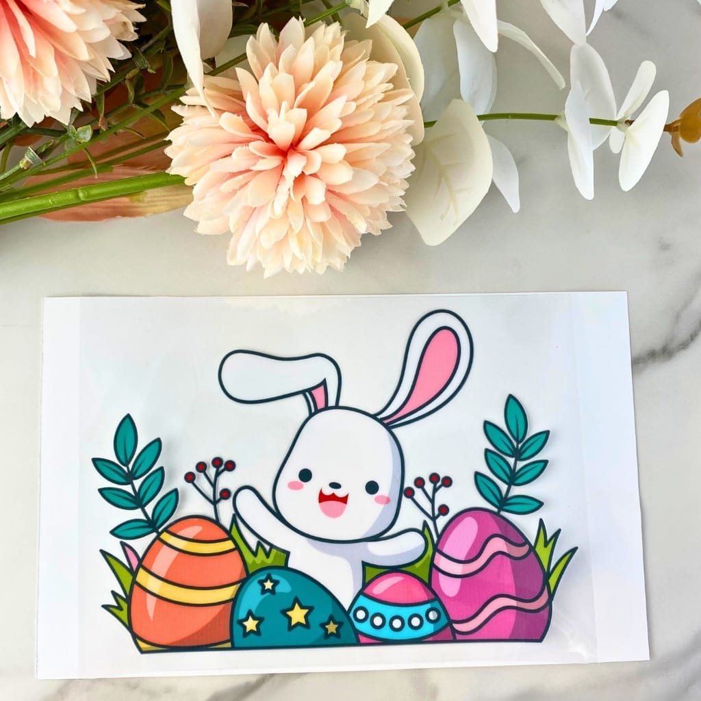 Bunny with Eggs1 | 4″ UV DTF Decal
