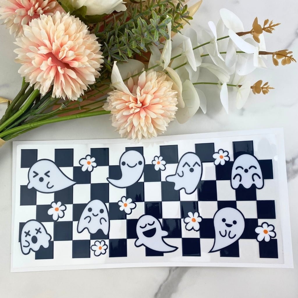 Checkered Ghost2 | 16 oz UV DTF Wrap