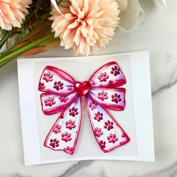 Paw Print Valentine Bow | 4″ UV DTF Decal