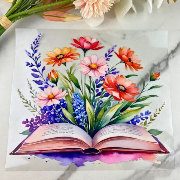 Book with Wildflowers | 20/25 oz UV DTF Wrap
