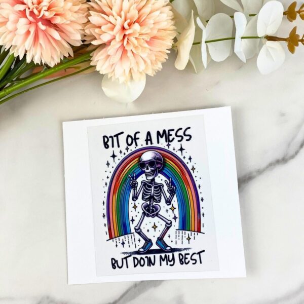 Bit of a Mess (rainbow) | 4″ UV DTF Decal