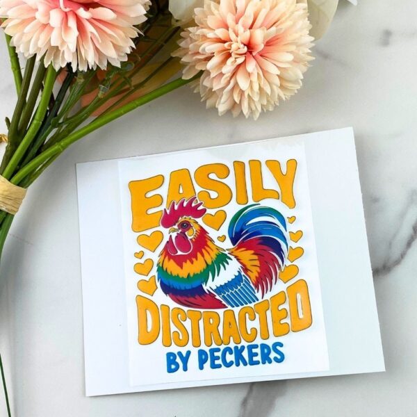 This Easily Distracted Decal is 4″ tall and great for glasses, plastic, tumblers, or any other hard surface. It’s just peel and stick!
