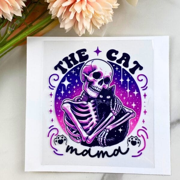 This The Cat Mama Decal is 4″ tall and great for glasses, plastic, tumblers, or any other hard surface. It’s just peel and stick!
