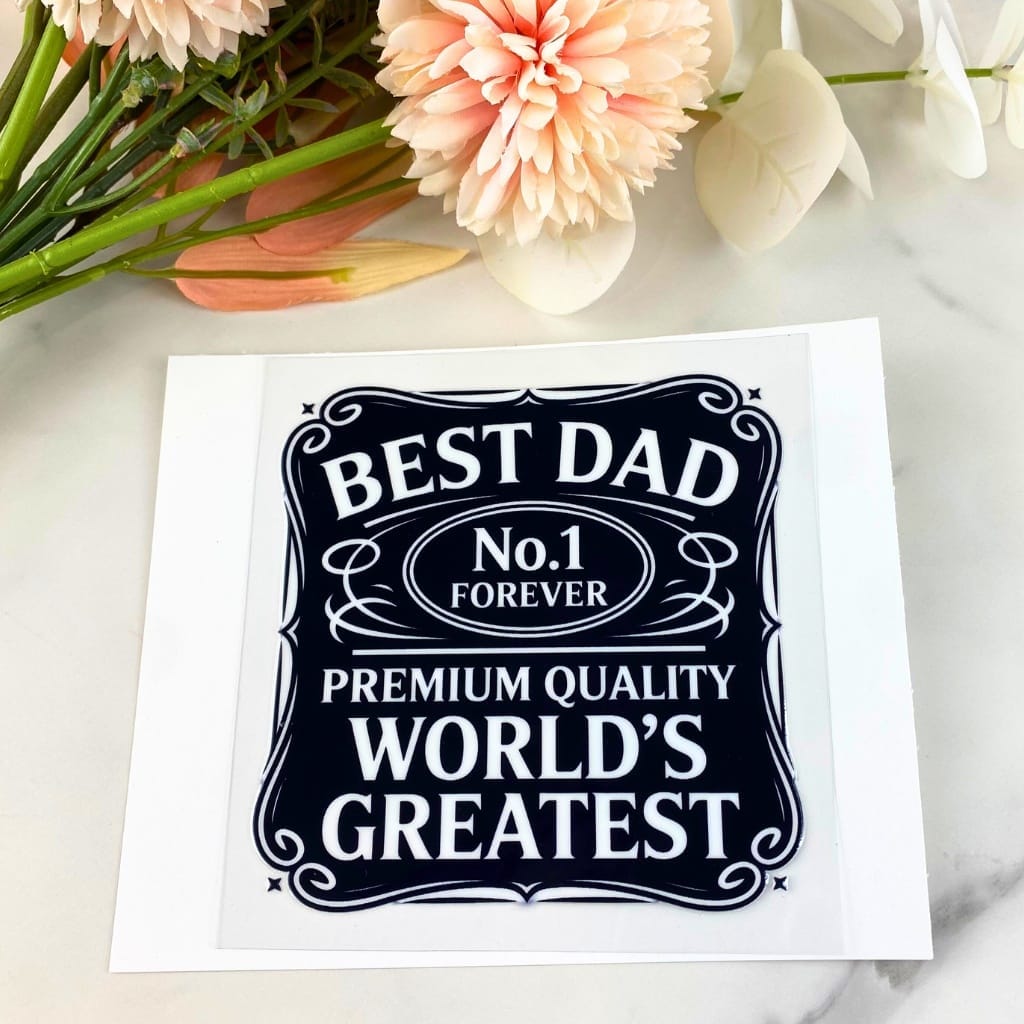 This World’s Best Dad Decal is 4″ tall and great for glasses, plastic, tumblers, or any other hard surface. It’s just peel and stick!