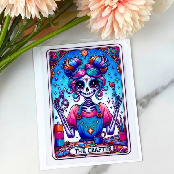The Crafter Decal is 4″ in height (varying width) and can be used on any hard surface, plastic, or tumblers. Just peel and stick!